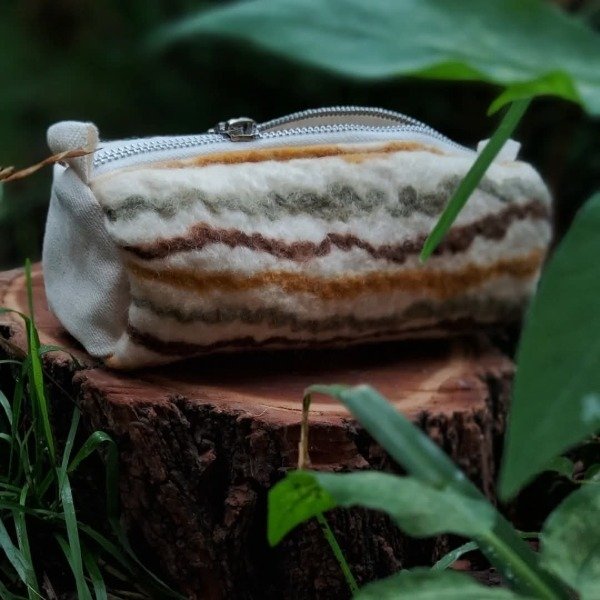 En nuestra tienda vas a encontrar cartucheras únicas, hechas a mano con la técnica ancestral del fieltro amasado. Cada pieza nace del trabajo paciente con vellones de lana natural, teñidos con tintes extraídos de plantas, cortezas y raíces.