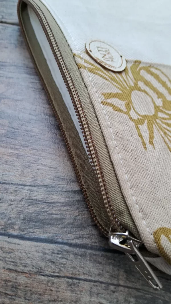 Cada neceser es una pieza única, confeccionada a mano en lienzo de algodón y gabardina, materiales nobles que aportan resistencia y textura. Las estampas son artesanales, aplicadas con técnicas manuales que imprimen formas orgánicas e imperfectas, propias del trabajo hecho a conciencia. Su formato tipo sobre lo hace práctico y versátil: ideal para organizar cosmética, papelería o llevar lo esencial en la cartera. Diseño simple, funcional y con sello propio.
