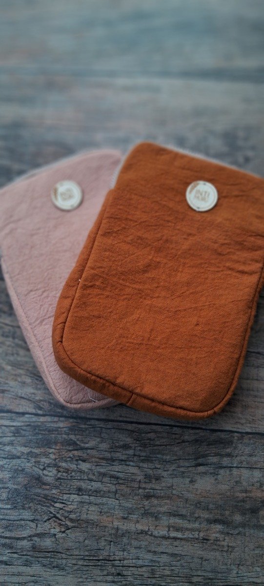 Cada uno de nuestros porta celulares está confeccionado a mano con dedicación y cuidado. Utilizamos géneros textiles intervenidos con tintes naturales extraídos de piel de cebolla y carozo de palta, lo que da como resultado una paleta única de tonos suaves y terrosos.
